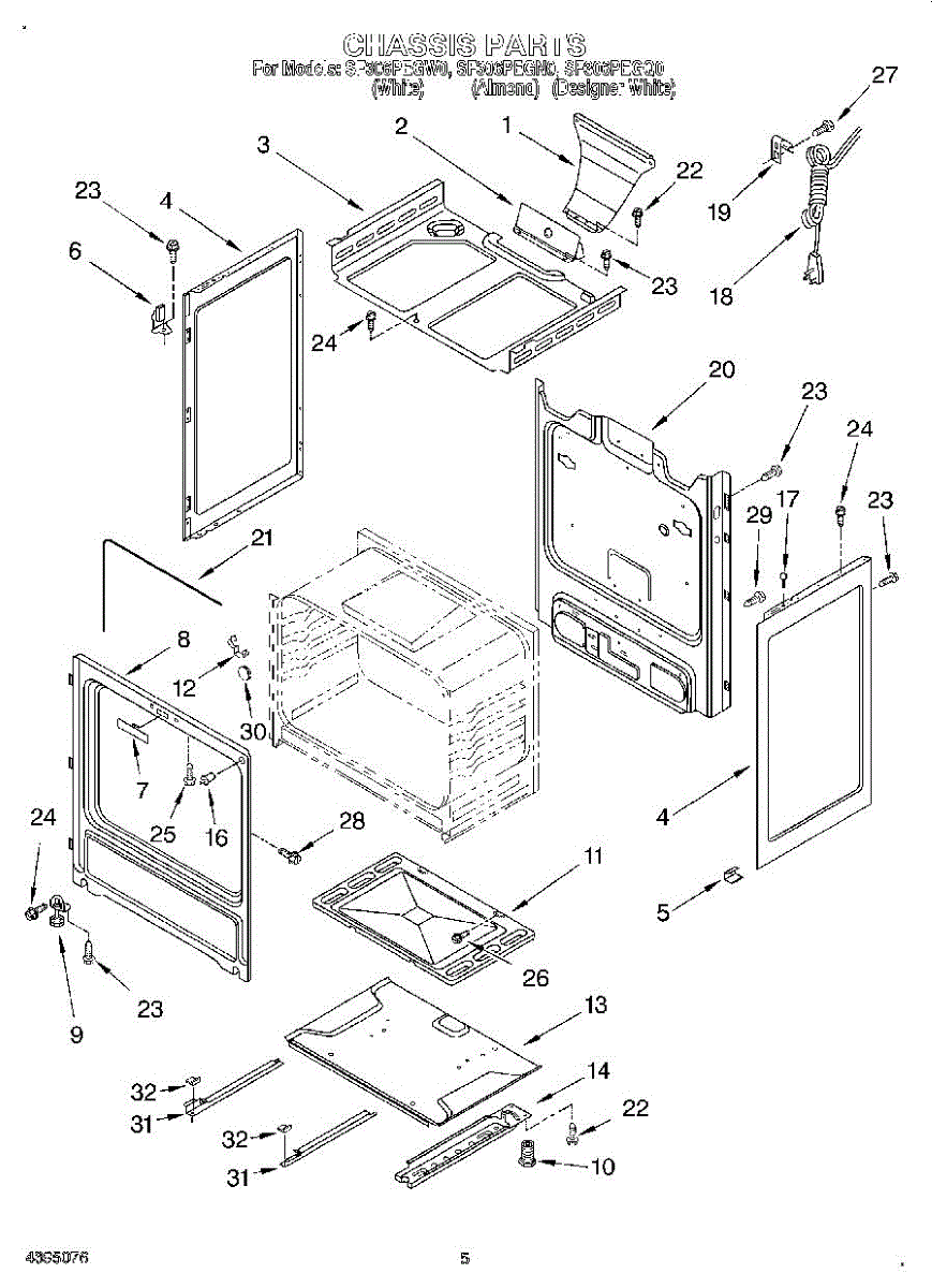 This factory screw secures appliance components to their mounting points. Replace missing, worn, or stripped hardware to restore a tight fit, proper alignment, and quieter operation across the affected assembly.