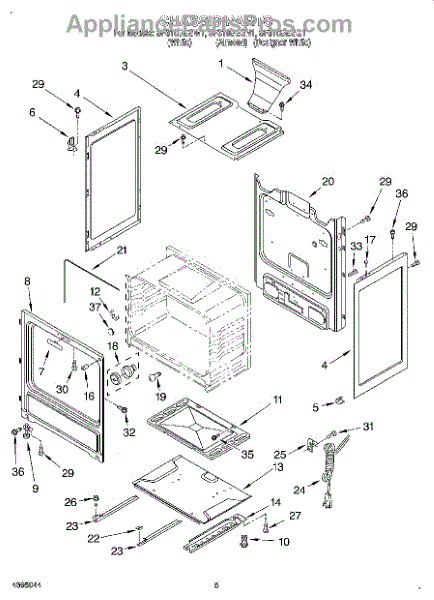 This factory screw secures appliance components to their mounting points. Replace missing, worn, or stripped hardware to restore a tight fit, proper alignment, and quieter operation across the affected assembly.