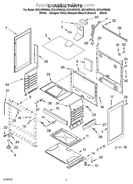 This factory screw secures appliance components to their mounting points. Replace missing, worn, or stripped hardware to restore a tight fit, proper alignment, and quieter operation across the affected assembly.