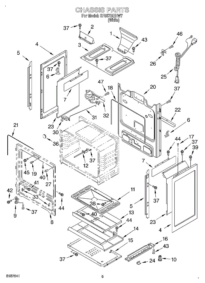 This factory screw secures appliance components to their mounting points. Replace missing, worn, or stripped hardware to restore a tight fit, proper alignment, and quieter operation across the affected assembly.