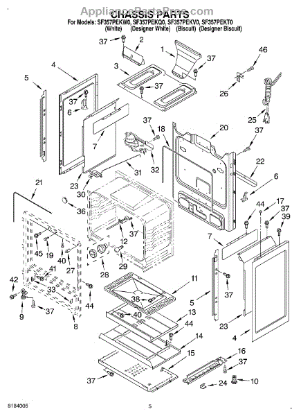 Parts for Whirlpool SF357PEKQ0: 04 - Chassis Parts