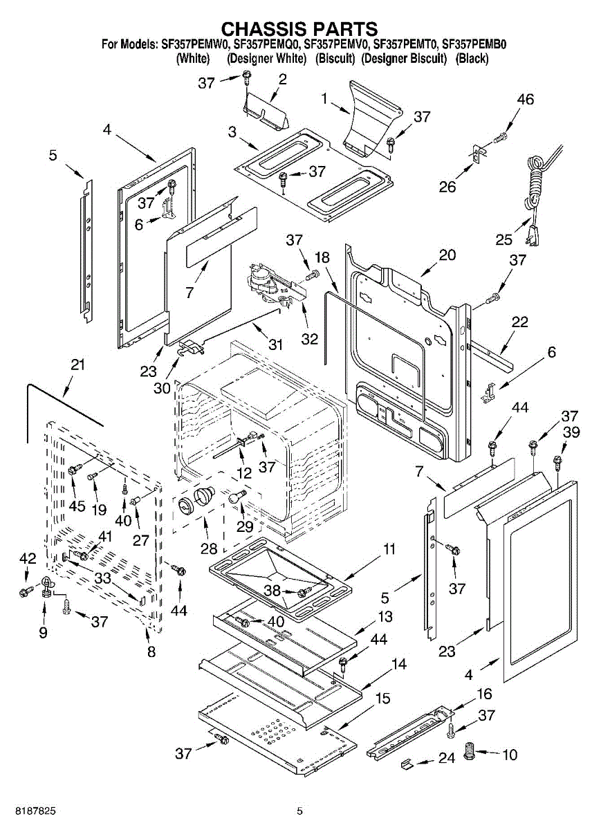 Fastens panels, brackets, and trim pieces on ranges and vacuums. Replace this screw if missing, stripped, or damaged to secure loose components and prevent rattling or misalignment.