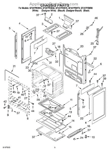 This factory screw secures appliance components to their mounting points. Replace missing, worn, or stripped hardware to restore a tight fit, proper alignment, and quieter operation across the affected assembly.