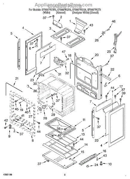 This factory screw secures appliance components to their mounting points. Replace missing, worn, or stripped hardware to restore a tight fit, proper alignment, and quieter operation across the affected assembly.