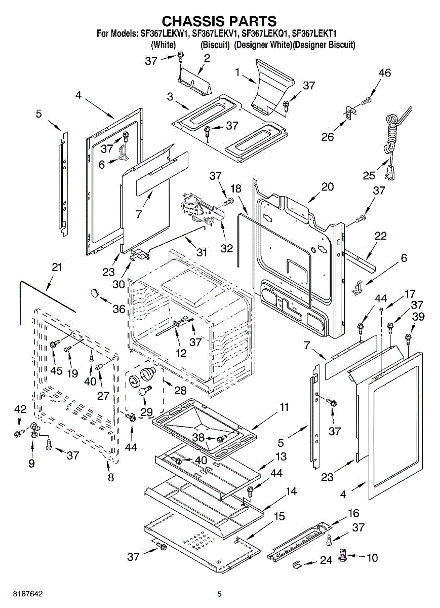 Fastens panels, brackets, and trim pieces on ranges and vacuums. Replace this screw if missing, stripped, or damaged to secure loose components and prevent rattling or misalignment.