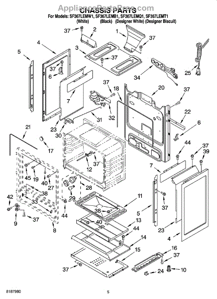 Parts for Whirlpool SF367LEMT1: 04 - Chassis Parts