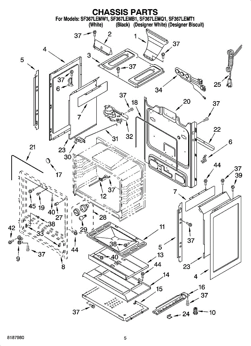 This factory screw secures appliance components to their mounting points. Replace missing, worn, or stripped hardware to restore a tight fit, proper alignment, and quieter operation across the affected assembly.