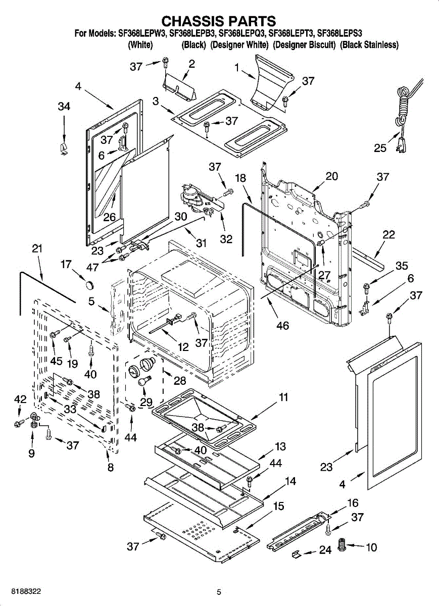 Replacement mounting screw for ranges. Secures panels, trim pieces, control boards, and brackets. Order when original screws are missing, stripped, or damaged.