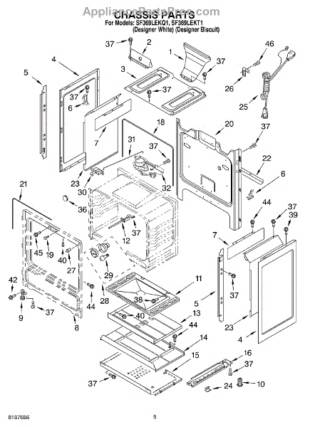 This factory screw secures appliance components to their mounting points. Replace missing, worn, or stripped hardware to restore a tight fit, proper alignment, and quieter operation across the affected assembly.