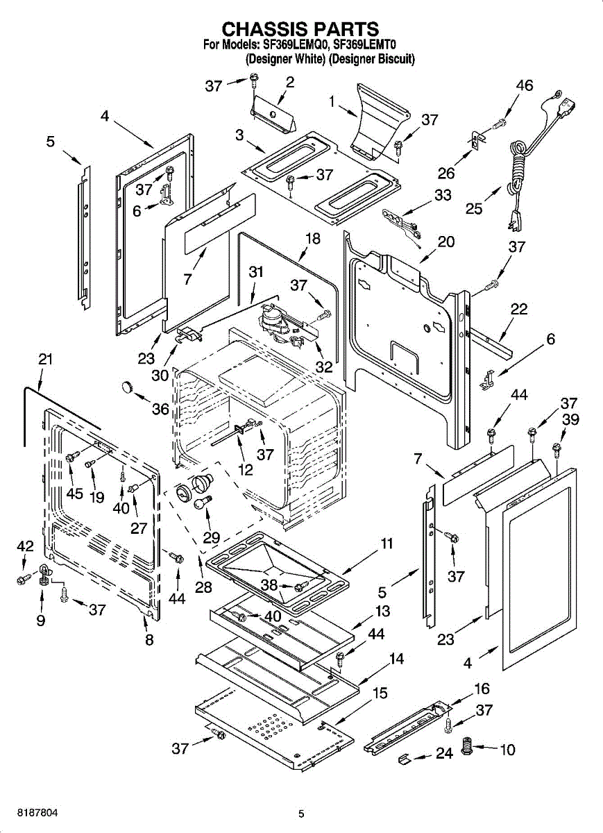 This factory screw secures appliance components to their mounting points. Replace missing, worn, or stripped hardware to restore a tight fit, proper alignment, and quieter operation across the affected assembly.