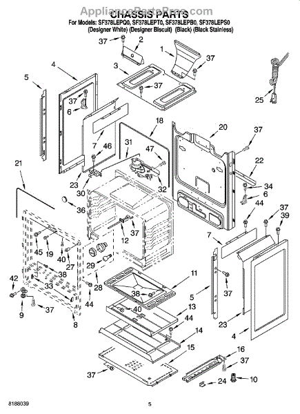 This factory screw secures appliance components to their mounting points. Replace missing, worn, or stripped hardware to restore a tight fit, proper alignment, and quieter operation across the affected assembly.