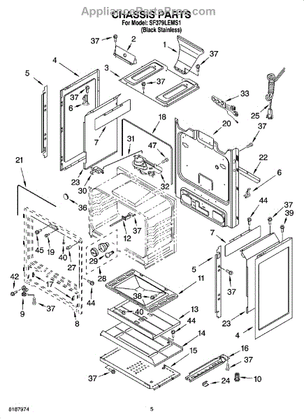 This factory screw secures appliance components to their mounting points. Replace missing, worn, or stripped hardware to restore a tight fit, proper alignment, and quieter operation across the affected assembly.