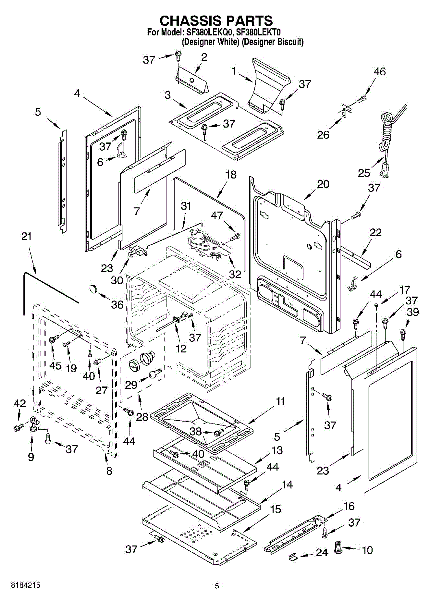 Fastens panels, brackets, and trim pieces on ranges and vacuums. Replace this screw if missing, stripped, or damaged to secure loose components and prevent rattling or misalignment.
