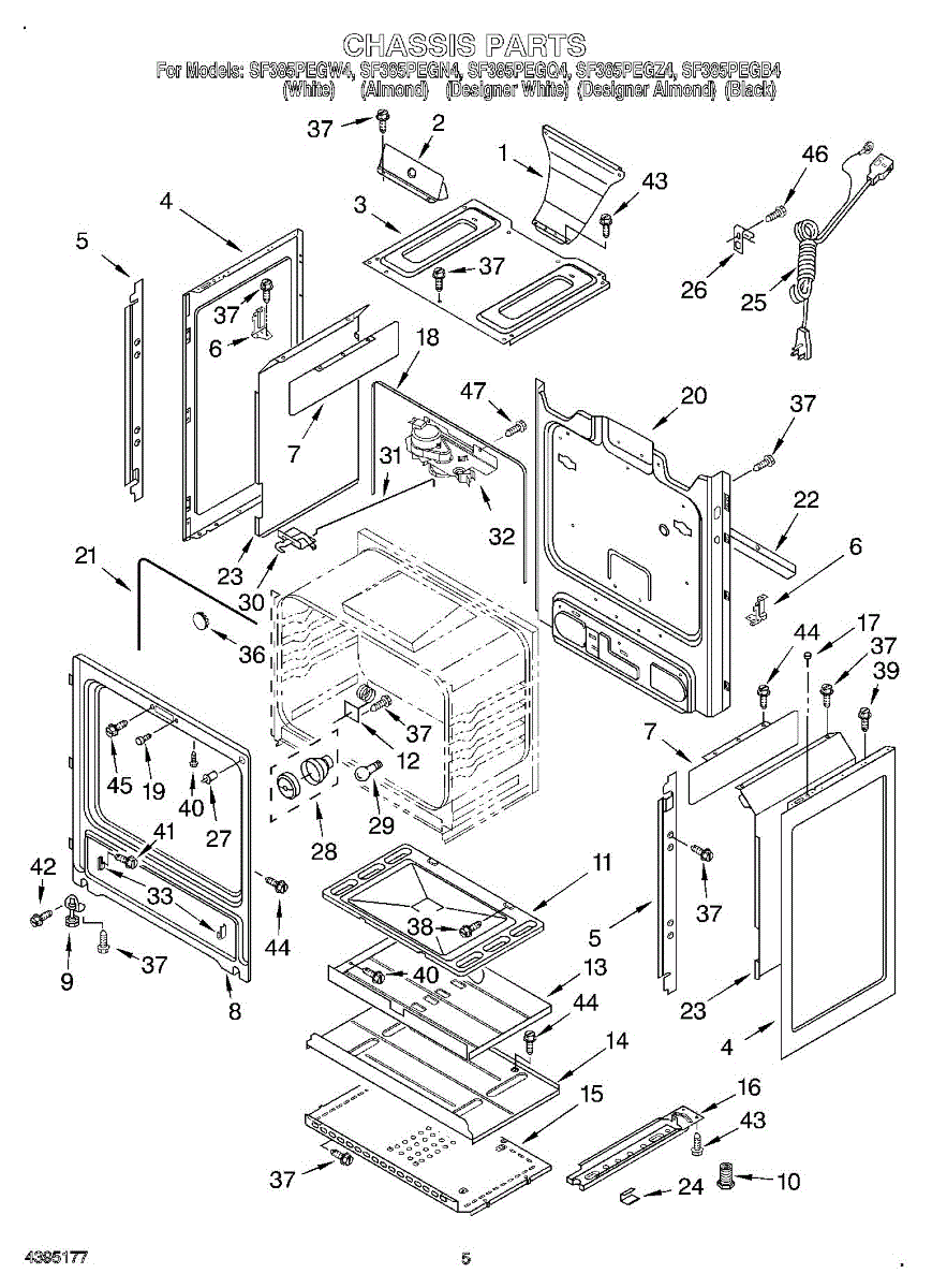 This factory screw secures appliance components to their mounting points. Replace missing, worn, or stripped hardware to restore a tight fit, proper alignment, and quieter operation across the affected assembly.