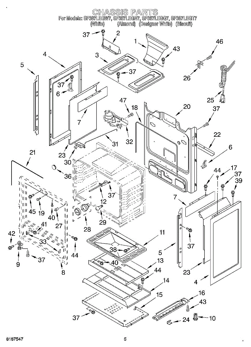 Fastens panels, brackets, and trim pieces on ranges and vacuums. Replace this screw if missing, stripped, or damaged to secure loose components and prevent rattling or misalignment.