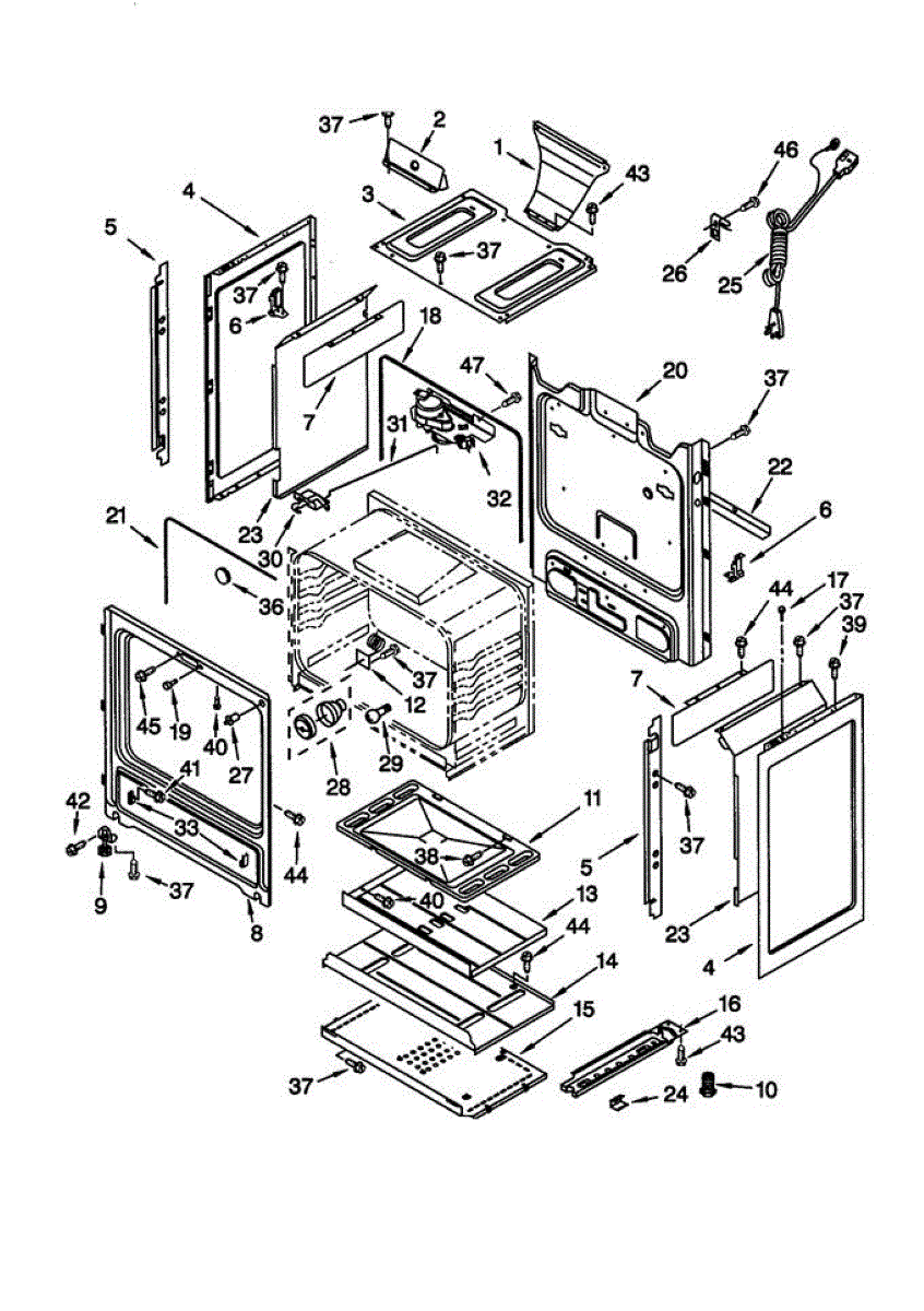 Lower heat shield for gas ranges. Protects internal components from excessive heat. Replace if cracked, warped, or damaged to maintain proper insulation.