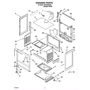 This factory screw secures appliance components to their mounting points. Replace missing, worn, or stripped hardware to restore a tight fit, proper alignment, and quieter operation across the affected assembly.