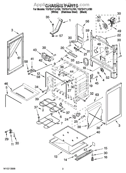 This factory screw secures appliance components to their mounting points. Replace missing, worn, or stripped hardware to restore a tight fit, proper alignment, and quieter operation across the affected assembly.