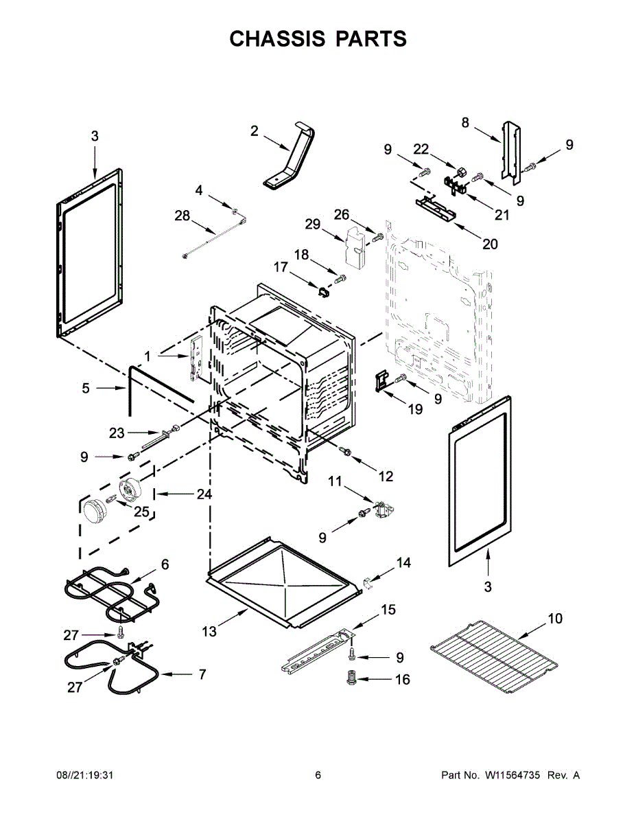 Broil element burnt out or not heating? This top heating element provides intense direct heat for broiling. Takes 15-20 minutes to replace yourself.