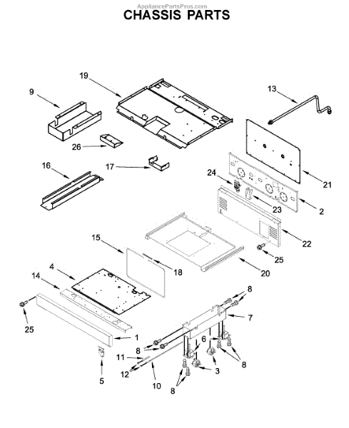Leveling foot for gas ranges. Installs at the base to adjust height and stability. Replace if broken, cracked, or missing to level your range properly.