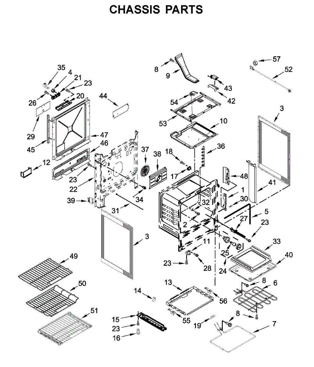 Service bracket for electric and gas ranges. Mounts internal components securely. Replace if bent, broken, or missing to restore proper structural support.