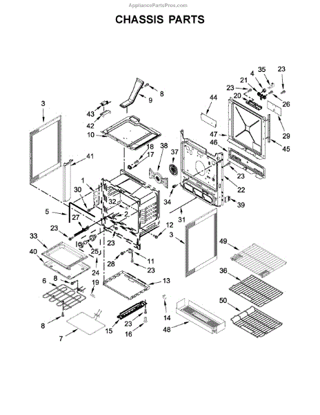 The Bottom Oven Panel is an OEM part for Whirlpool ranges. This panel is located at the bottom of the oven cavity, protecting the internal components and providing a smooth surface for easy cleaning.
