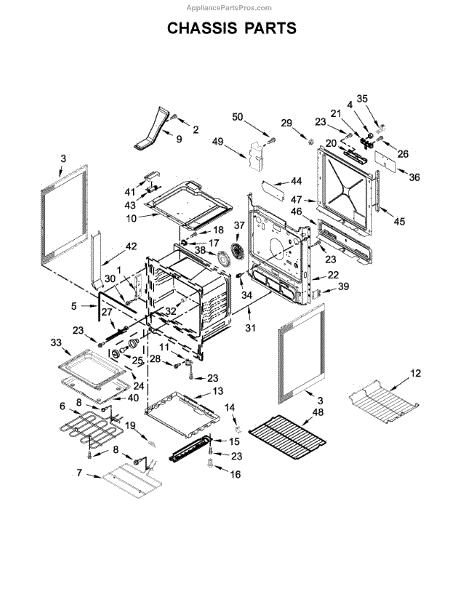 The Bottom Oven Panel is an OEM part for Whirlpool ranges. This panel is located at the bottom of the oven cavity, protecting the internal components and providing a smooth surface for easy cleaning.