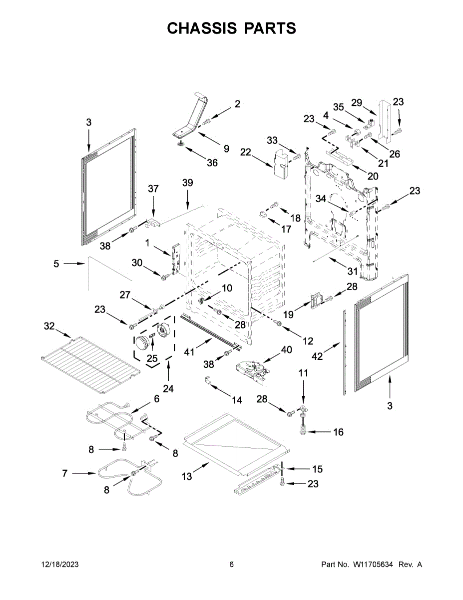 Complete front door assembly for electric and gas ranges. Replaces cracked, dented, or misaligned doors that no longer close or secure properly.