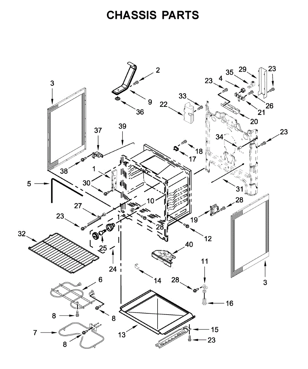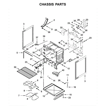 Service bracket for electric and gas ranges. Mounts internal components securely. Replace if bent, broken, or missing to restore proper structural support.