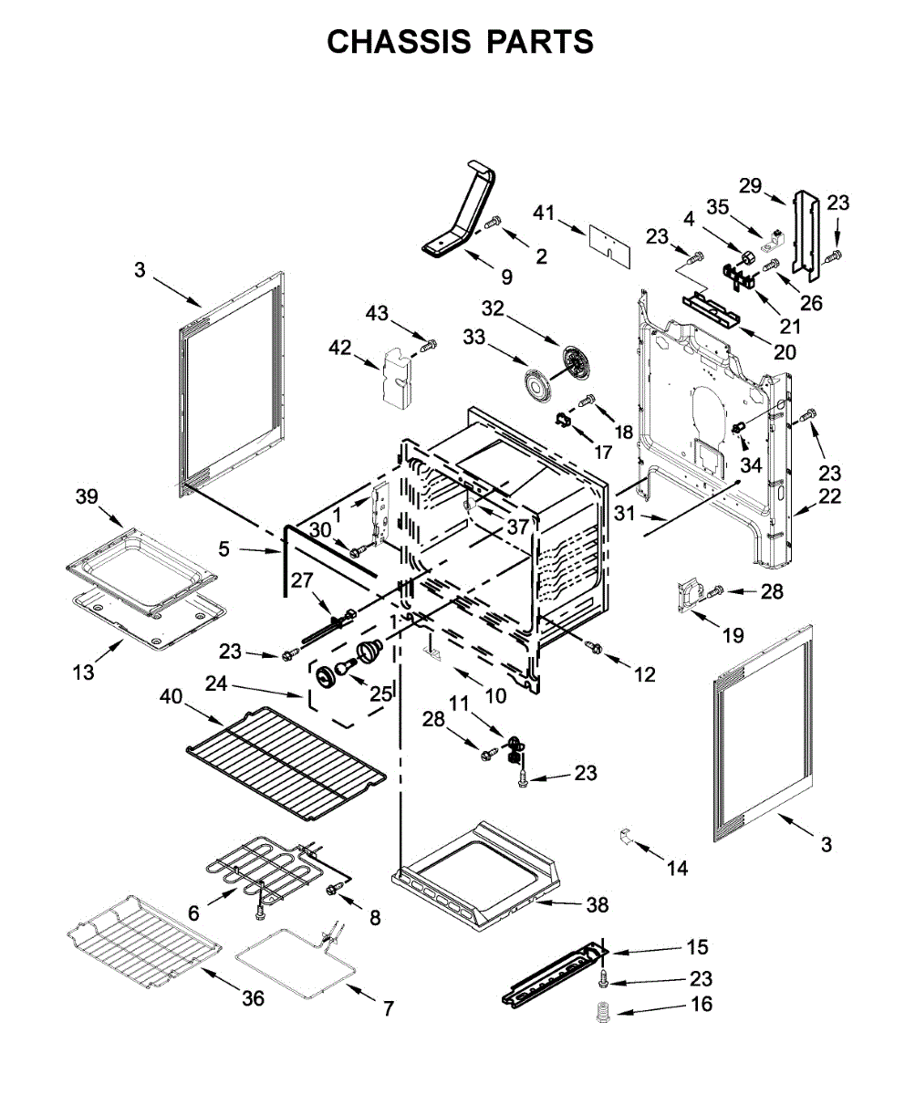 The Bottom Oven Panel is an OEM part for Whirlpool ranges. This panel is located at the bottom of the oven cavity, protecting the internal components and providing a smooth surface for easy cleaning.