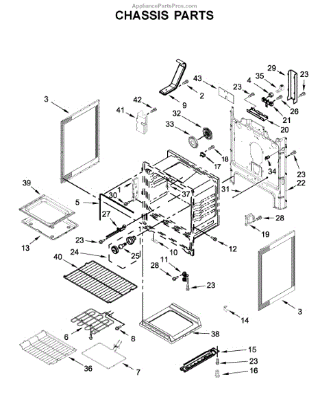 The Bottom Oven Panel is an OEM part for Whirlpool ranges. This panel is located at the bottom of the oven cavity, protecting the internal components and providing a smooth surface for easy cleaning.