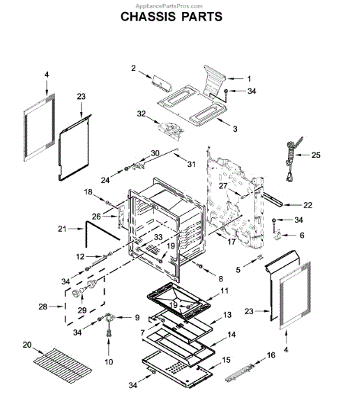 This panel forms the floor of the oven, sitting above the bake element or burner to shield it from spills and provide a smooth, stable surface. Replace a warped or damaged panel to help maintain proper heating and easier cleanup. What it does: