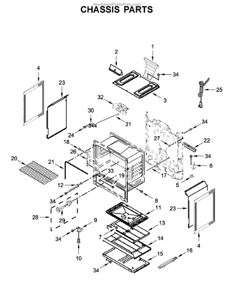 This panel forms the floor of the oven, sitting above the bake element or burner to shield it from spills and provide a smooth, stable surface. Replace a warped or damaged panel to help maintain proper heating and easier cleanup. What it does:
