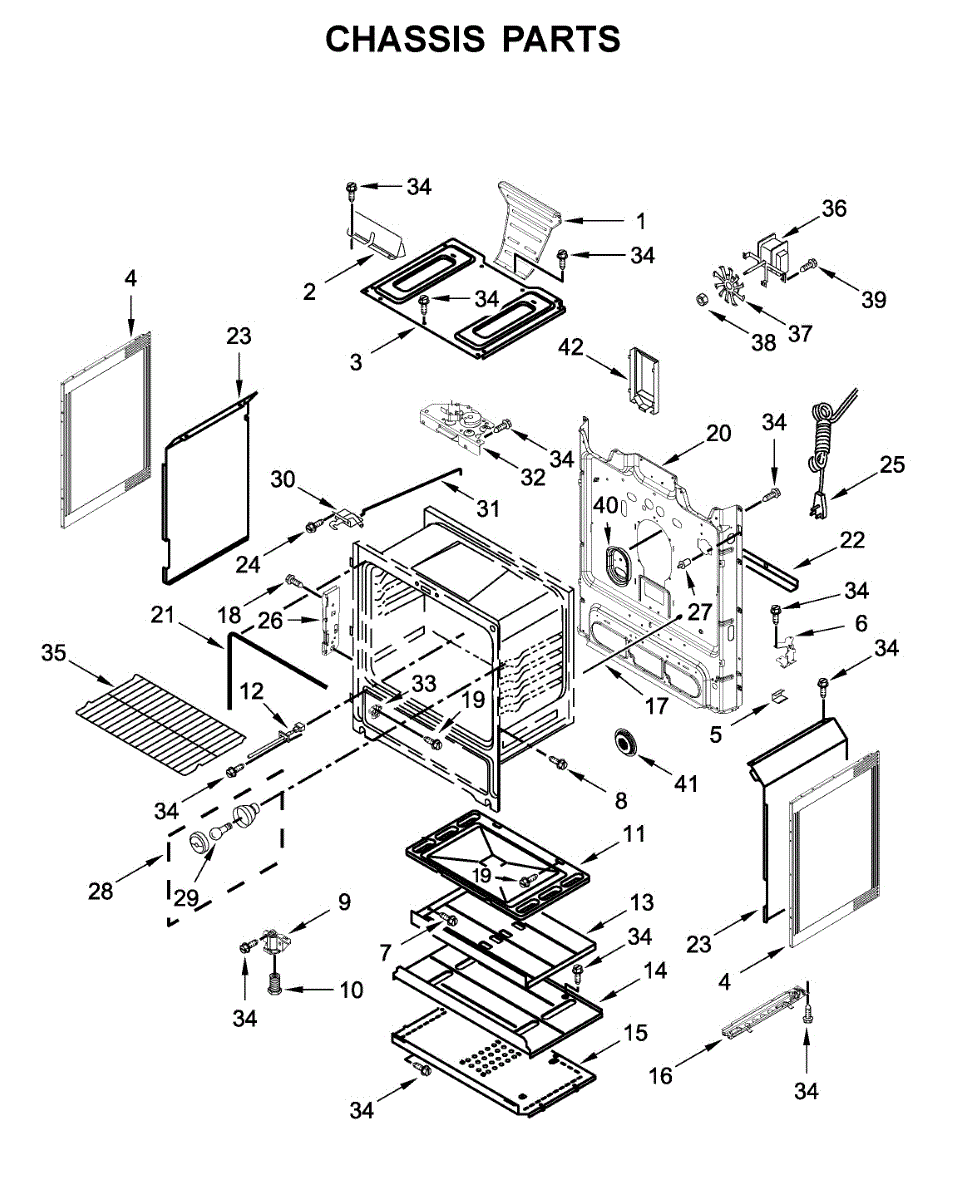 Replacement mounting screw for securing range panels, brackets, and internal components. Replace missing, stripped, or rusted screws to restore fit.