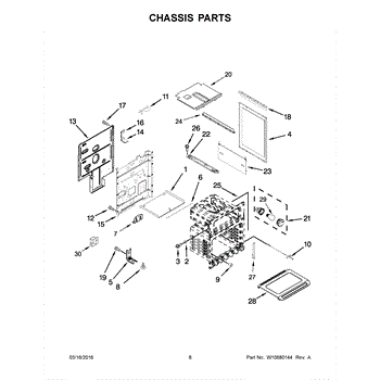 Replacement side panel assembly for gas ranges and ovens. Restores exterior appearance when original panel is cracked, dented, rusted, or bent. Mounts to frame.