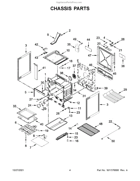 Front leveling foot adjusts range height for stability. Replaces cracked, broken, or missing feet. Ensures proper leveling to reduce vibration.