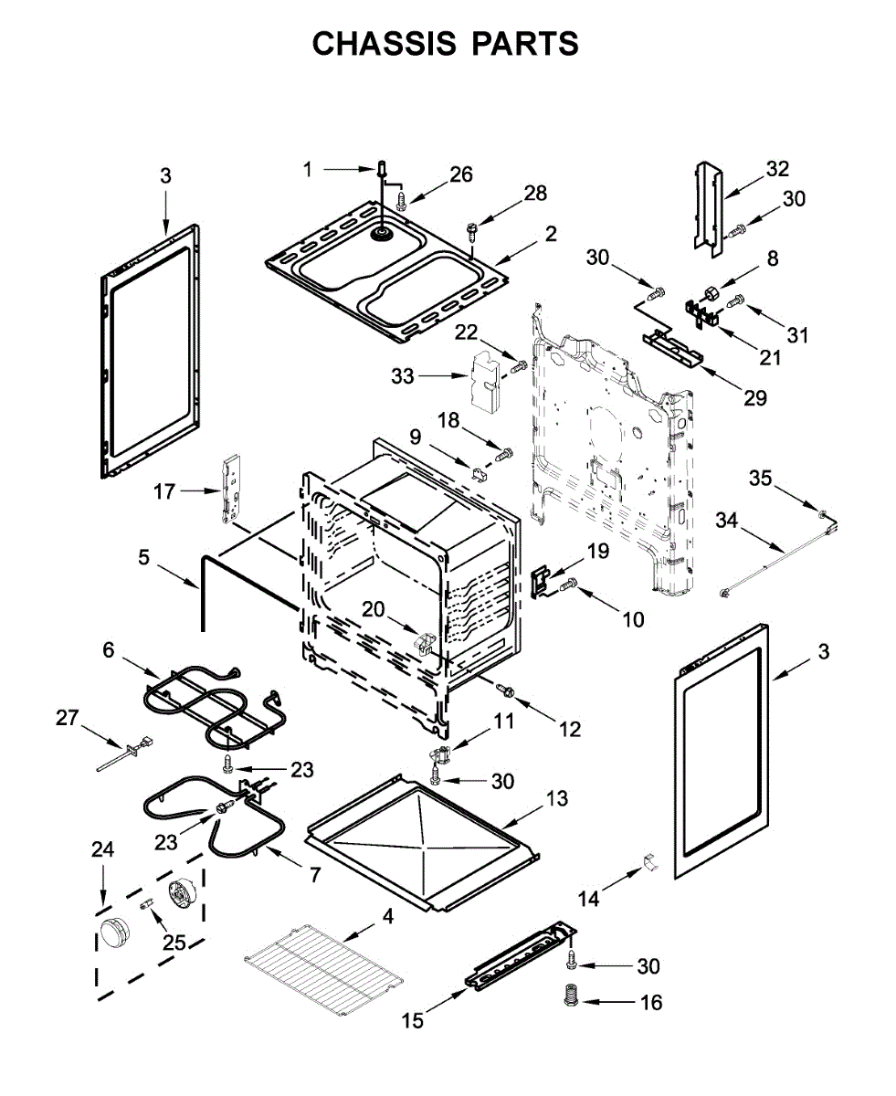 The Broil Element is an OEM part for Whirlpool ovens. It is located at the top of the oven interior and is responsible for providing intense, direct heat for broiling.