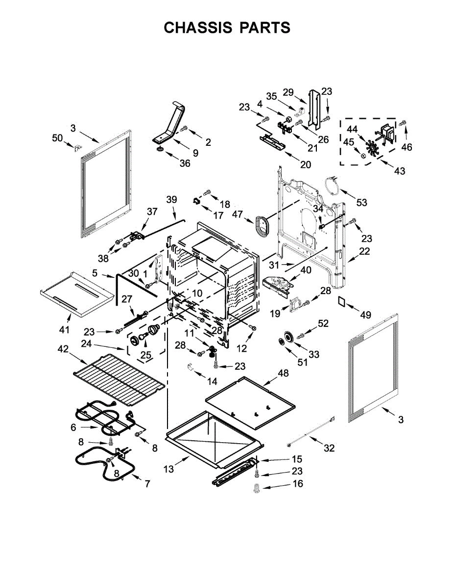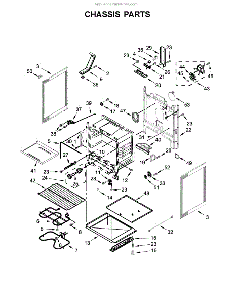 Complete front door assembly for electric and gas ranges. Replaces cracked, dented, or misaligned doors that no longer close or secure properly.