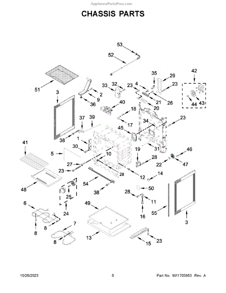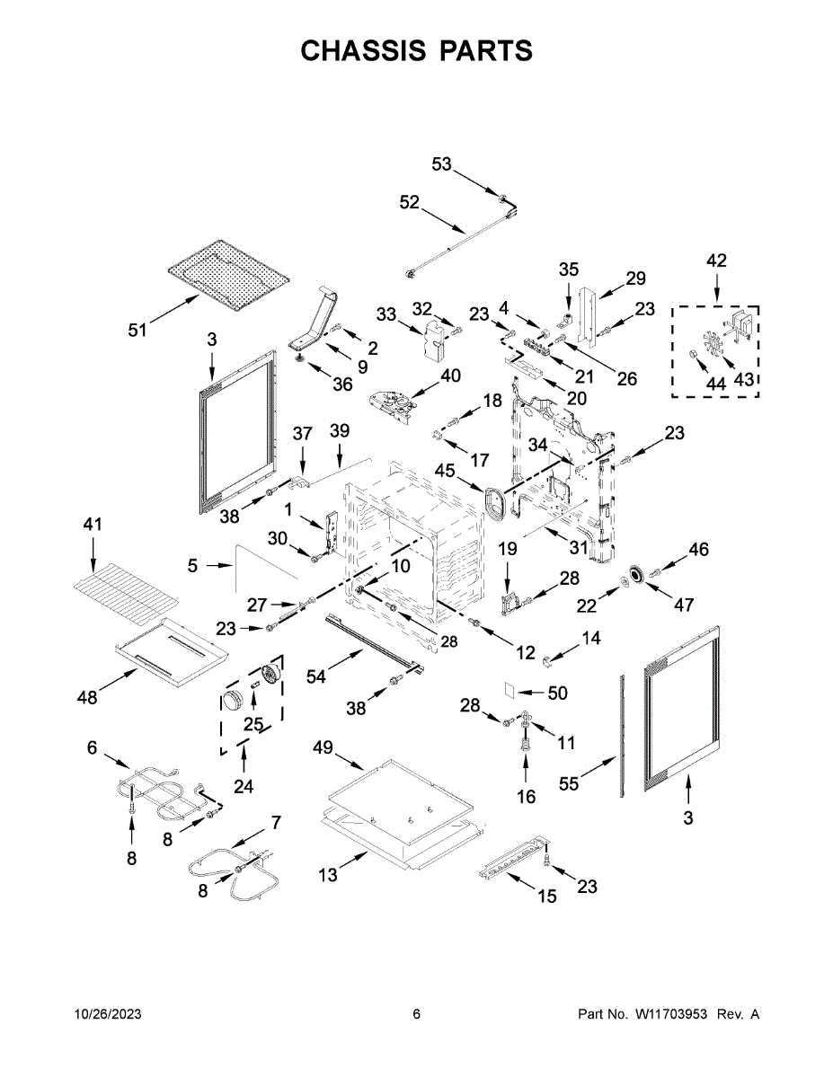 Complete front door assembly for electric and gas ranges. Replaces cracked, dented, or misaligned doors that no longer close or secure properly.