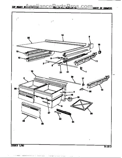 Parts for Magic Chef RB21JA-4A/9A23A: Chest Of Drawers (Rb21ja-4A / 9A24a) (Rb21jn-4A / 9A23a) Parts