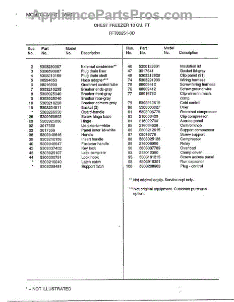 This is a compressor used in several types of home appliances. The compressor is designed to take cold gas in the appliance and place it under pressure so the gas raises in temperature. It is then moved through the refrigerator system to ensure the unit stays cold throughout the appliance. This part can become damaged or malfunction, which may cause the motor to stop running, make the motor noisier, or cause the motor to never stop running.If this happens, the compressor will need to be replaced. A basic set of tools will be needed. A pair of work gloves can also be useful. First, locate the compressor as it may be in various locations depending on the appliance model. Unplug the appliance before removing the compressor. Install the new compressor using the original bolts and nuts before turning the power back on and resuming normal use.This part is sold on an individual basis. The compressor is made to be used with refrigerators, ranges, stoves, ovens, air conditioners, and freezers created by Gibson, Frigidaire, Kelvinator, Montgomery Wards, Westinghouse, Tappan, JCPenney, Universal, and Kenmore. It is an authentic OEM replacement part directly sourced from the manufacturer.