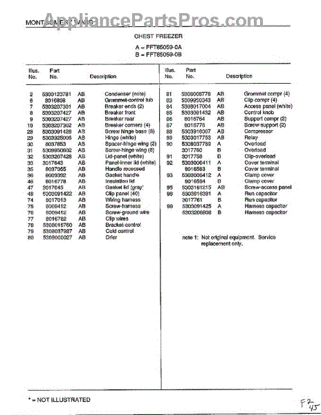 This is a compressor used in several types of home appliances. The compressor is designed to take cold gas in the appliance and place it under pressure so the gas raises in temperature. It is then moved through the refrigerator system to ensure the unit stays cold throughout the appliance. This part can become damaged or malfunction, which may cause the motor to stop running, make the motor noisier, or cause the motor to never stop running.If this happens, the compressor will need to be replaced. A basic set of tools will be needed. A pair of work gloves can also be useful. First, locate the compressor as it may be in various locations depending on the appliance model. Unplug the appliance before removing the compressor. Install the new compressor using the original bolts and nuts before turning the power back on and resuming normal use.This part is sold on an individual basis. The compressor is made to be used with refrigerators, ranges, stoves, ovens, air conditioners, and freezers created by Gibson, Frigidaire, Kelvinator, Montgomery Wards, Westinghouse, Tappan, JCPenney, Universal, and Kenmore. It is an authentic OEM replacement part directly sourced from the manufacturer.