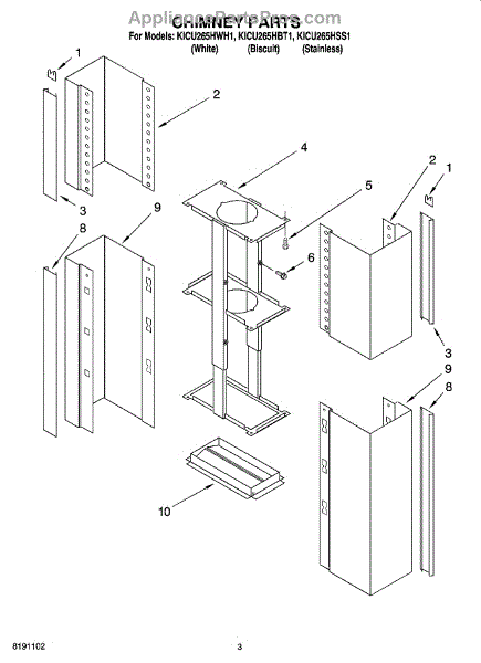 Parts for Kitchenaid KICU265HBT1: 03 - Chimney Parts