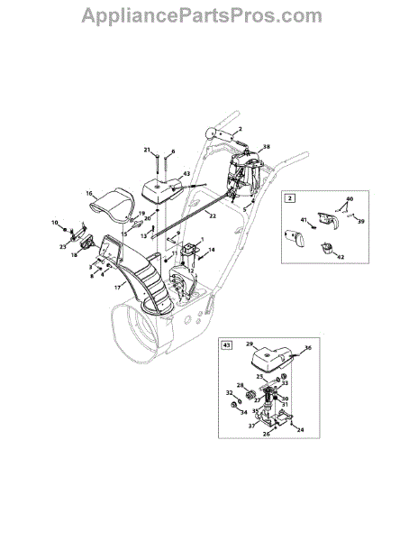 This lower chute is a quality replacement part that is used on several models of snowblowers. It is made of high-quality plastic for durability and is placed so it can direct snow in a certain direction when it leaves a snowblower. Over time and with regular use, this part can become damaged. If this occurs, it will need to be replaced so the discharged snow ends up in the right location.When replacing the lower chute, a wrench and work gloves will be needed. The snowblower should be placed on a flat surface, and the spark plug wire needs to be disconnected. The gearbox and the lower chute will need to be removed before the new replacement part can be installed. Line up the chute and install it used the cotter pin and flange lock nut. Replace all the components before using the snowblower.This is an authentic OEM replacement part that is sourced directly from the manufacturer. It is sold on an individual basis. The lower chute is used with snowblowers manufactured by Craftsman, Cub Cadet, Huskee, MTD, Troy-Bilt, Yard Machines, and Yard-Man.
