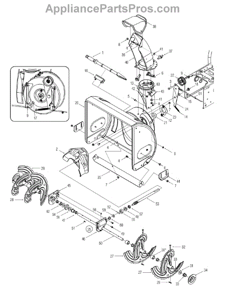 This impeller is a genuine OEM replacement part sourced directly from the manufacturer for use on snowblowers to move snow that has accumulated and is a safety hazard. The impeller rotates to pull the snow up and out a discharge chute. If snow is not blowing out of the blower, the impeller should be checked to ensure it is rotating. If the impeller is not rotating, it will need to be removed and replaced for the blower to function properly.Remove the spark plug from the machine and drain the gas from the engine. Disconnect the control cables and separate the engine of the blower from the blower itself. Remove the auger to access the impeller. Remove the impeller from the blower and install the new one. Reassemble the snowblower and refill the gas. Put the spark plug back in and fire up the engine to test the new impeller. This impeller is sold as an individual unit. It is designed for use in snowblowers that are manufactured by MTD, Yard Machines, Yard-Man, Troy-Bilt, Husky, and Cub Cadet.
