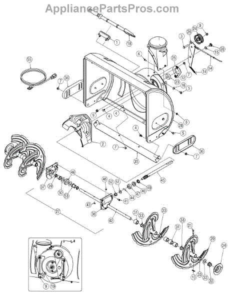 Snowblower won't throw snow or clears unevenly? This left hand auger assembly collects and feeds snow to the impeller. Moderate DIY repair.