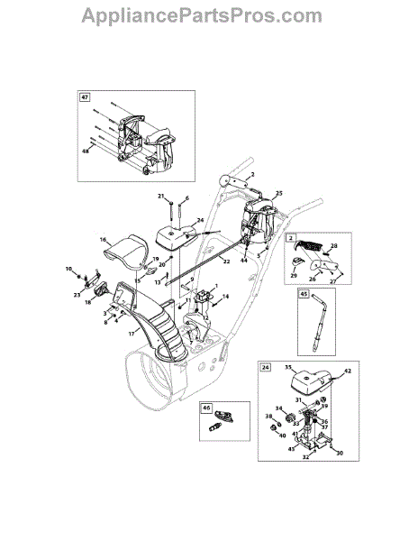 This lower chute is a quality replacement part that is used on several models of snowblowers. It is made of high-quality plastic for durability and is placed so it can direct snow in a certain direction when it leaves a snowblower. Over time and with regular use, this part can become damaged. If this occurs, it will need to be replaced so the discharged snow ends up in the right location.When replacing the lower chute, a wrench and work gloves will be needed. The snowblower should be placed on a flat surface, and the spark plug wire needs to be disconnected. The gearbox and the lower chute will need to be removed before the new replacement part can be installed. Line up the chute and install it used the cotter pin and flange lock nut. Replace all the components before using the snowblower.This is an authentic OEM replacement part that is sourced directly from the manufacturer. It is sold on an individual basis. The lower chute is used with snowblowers manufactured by Craftsman, Cub Cadet, Huskee, MTD, Troy-Bilt, Yard Machines, and Yard-Man.