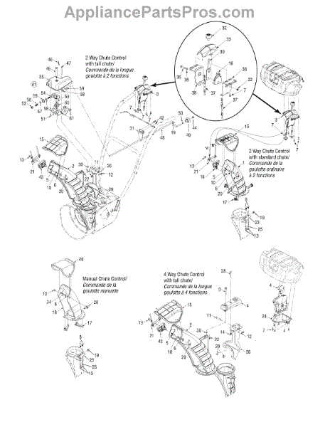 This lower chute is a quality replacement part that is used on several models of snowblowers. It is made of high-quality plastic for durability and is placed so it can direct snow in a certain direction when it leaves a snowblower. Over time and with regular use, this part can become damaged. If this occurs, it will need to be replaced so the discharged snow ends up in the right location.When replacing the lower chute, a wrench and work gloves will be needed. The snowblower should be placed on a flat surface, and the spark plug wire needs to be disconnected. The gearbox and the lower chute will need to be removed before the new replacement part can be installed. Line up the chute and install it used the cotter pin and flange lock nut. Replace all the components before using the snowblower.This is an authentic OEM replacement part that is sourced directly from the manufacturer. It is sold on an individual basis. The lower chute is used with snowblowers manufactured by Craftsman, Cub Cadet, Huskee, MTD, Troy-Bilt, Yard Machines, and Yard-Man.
