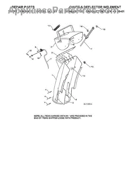 Parts for Husqvarna ST227-97046890100: Chute & Deflector Weldments Parts