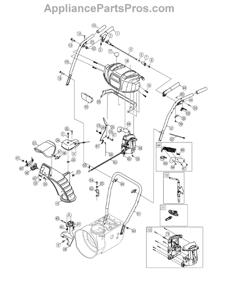 This lower chute is a quality replacement part that is used on several models of snowblowers. It is made of high-quality plastic for durability and is placed so it can direct snow in a certain direction when it leaves a snowblower. Over time and with regular use, this part can become damaged. If this occurs, it will need to be replaced so the discharged snow ends up in the right location.When replacing the lower chute, a wrench and work gloves will be needed. The snowblower should be placed on a flat surface, and the spark plug wire needs to be disconnected. The gearbox and the lower chute will need to be removed before the new replacement part can be installed. Line up the chute and install it used the cotter pin and flange lock nut. Replace all the components before using the snowblower.This is an authentic OEM replacement part that is sourced directly from the manufacturer. It is sold on an individual basis. The lower chute is used with snowblowers manufactured by Craftsman, Cub Cadet, Huskee, MTD, Troy-Bilt, Yard Machines, and Yard-Man.